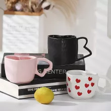 - Heart-shaped ceramic mug with elegant European style