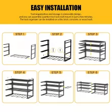 Built to last, this organizer is constructed from heavy-duty carbon steel with a durable powder-coated finish that resists rust and fading. Its wall-mounted design not only maximizes your available space but also keeps your tools off crowded workbenches, allowing you to focus on your projects without clutter.