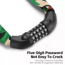 Crafted from hardened alloy steel, the chain is built to withstand cutting, sawing, and tampering. The lock mechanism features a 5-digit password combination, offering up to 100,000 possible code variations. This makes it far more secure than traditional 4-digit locks. The chain is wrapped in a protective cover that prevents scratches on your bike frame while ensuring long-lasting durability.