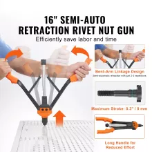 The kit is available in two practical configurations to match your workflow. The 16-inch semi-auto rivet nut tool uses a smart de-riveting mechanism that releases the rivet automatically after just a few handle movements. This saves time and reduces hand fatigue during long jobs. The 14-inch manual lever-style tool includes a de-riveting lever for controlled release and excellent leverage. Both designs use long handles to multiply force, making installation easier even in thicker materials.