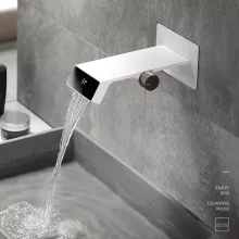 Transform your bathroom into a modern sanctuary with our High-End Intelligent Digital Display Dual Control Bathroom Faucet. This exquisite faucet seamlessly combines contemporary style with advanced functionality, providing a luxurious touch to any basin. Its sleek white brass finish and wall entry design make it a standout piece, perfect for those who appreciate both aesthetics and performance.