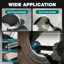 Perfect for cutting various plastic pipes from 1-1/4 in. to 8 in., this tool works seamlessly with PVC, PPR, PE, and other rigid tubes. It attaches easily to impact drivers and drills, allowing you to use the tools you already rely on. The included deburring blade removes rough edges after cutting, leaving every pipe end clean, smooth, and ready for installation.