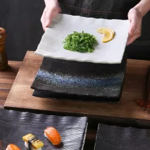Bring the beauty of Japanese craftsmanship to your dining table with this stunning 9-inch ceramic square plate. Designed with a creative stone-inspired pattern, each piece showcases a minimalist charm that perfectly complements both traditional sushi and modern Western cuisine. The smooth, underglaze finish gives it a natural, sophisticated look that stands out at any meal. Whether for a casual family dinner or a special gathering, this plate transforms every dish into a visual delight.