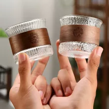 Every detail of this glass mug reflects true craftsmanship. The hammer pattern texture adds a three-dimensional feel that sparkles beautifully in the light, while the smooth rounded rim ensures a comfortable sip every time. Its solid wooden sleeve not only adds style but also provides an anti-scalding grip, keeping your hands safe from the heat. The thick, flat bottom enhances stability, making it as practical as it is stunning.