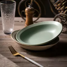Perfect for any occasion, this rustic ceramic dish set will impress your guests and make every meal feel special. The soft green color and solid design complement a variety of table settings, making them an ideal choice for modern and traditional homes alike. Enhance your dining experience with a set that reflects both beauty and practicality.