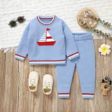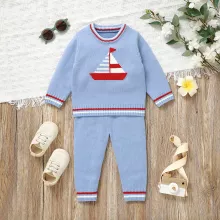 Dress your little one in comfort and charm with this adorable knit baby sweater and pants set. Designed for active babies and toddlers, this two-piece outfit blends warmth, softness, and playful style into one easy-to-wear look. The long-sleeve pullover sweater features a sweet cartoon boat design that instantly adds personality, while the matching pants complete the outfit with a cozy, put-together feel. It’s the kind of outfit that looks cute at home, during playtime, or on family outings.