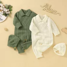 This romper is best used during autumn and mild cold weather when babies need extra warmth without heavy layers. The soft knitted fabric feels gentle against delicate skin, making it ideal for daily wear at home or outside. The pullover design with a turn-down collar makes dressing quick and stress-free, saving time during busy mornings or diaper changes.