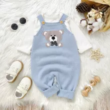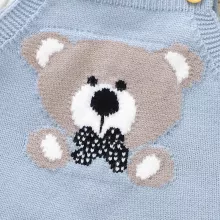 Wrap your little one in cozy cuteness with this beautifully knitted baby romper designed for both boys and girls. Made to keep babies warm without feeling bulky, this sleeveless jumpsuit blends comfort, softness, and charm in one easy outfit. The sweet cartoon bear design adds a playful touch, making it perfect for everyday wear as well as special moments you will want to remember.