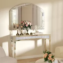 Elevate your home decor with our Large Arched Decorative Wall Mirror, designed to bring sophistication and style to any room. Measuring 40″x28″, this stunning mirror is the perfect addition to your living room, bedroom, or vanity area. Its elegant arched shape and silver finish add a touch of class, making it a versatile piece that complements various interior designs. Crafted with a beveled glass edge, this mirror not only enhances the aesthetic appeal of your space but also creates beautiful reflections that add depth and dimension. The luxurious feel of the mirror is further amplified when paired with other mirrored furniture, transforming your room into a chic and modern haven.