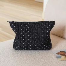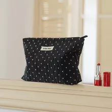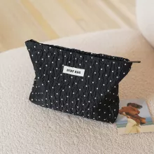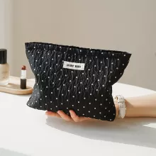 Elevate your beauty routine with this stylish black background makeup bag decorated with playful white dots. Designed for modern women on the go, it blends fashion with functionality. Whether you’re heading to work, traveling, or enjoying a weekend getaway, this versatile bag keeps your essentials organized and close at hand.