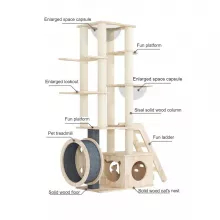 I was on the hunt for something that could keep my indoor cats entertained and active, and this cat tree tower has proven to be just the solution I needed. It's spacious with multiple tiers, giving them ample room to explore heights - which they absolutely love! The solid wood construction ensures durability while also serving as a scratching post for them. This means my furniture is finally safe from their claws. What makes it even better is how well it blends with our home decor due to its simple yet stylish design.