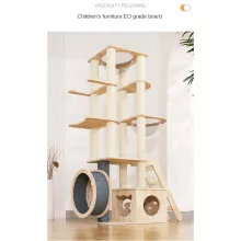 Our cat tree stands out with its impressive five or more tiers, offering ample space for exploration and lounging. The solid wood construction ensures durability and stability, making it a lasting addition to your home. The sleek, simple design not only adds a touch of elegance but also blends seamlessly with your home decor.