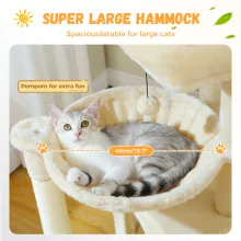 This multi-tier cat tower features two spacious condos for cozy hideaways, a large 15.7-inch hammock for lounging, a soft padded perch for resting, and multiple sisal-wrapped scratching posts to protect your furniture from claw marks. A secure ramp makes climbing easy, while plush coverings ensure every surface feels soft and inviting. The dual-condo design is ideal for both young kittens and senior cats, giving each their perfect resting spot.