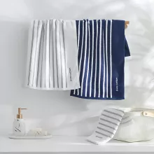 Bring home a towel set that blends comfort, function and style. Whether for your own bathroom or as a thoughtful gift, this striped cotton set offers the everyday luxury you deserve. Add it to your cart now and enjoy a fresher, softer drying experience.