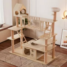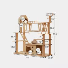 I've been on the hunt for a cat tower that could accommodate my two large Maine Coons and this one checks all the boxes. The durable wood construction is sturdy enough to withstand their rough play without any wob or tipping over, which gives me peace of mind. They absolutely love climbing up through the multiple tiers and scratching posts integrated into the design. Not only does this keep them entertained for hours on end but also our furniture from their claws! Plus, they love curling up in the cozy hammocks for nap times - sometimes they even prefer sleeping there over their own beds! All in all, an excellent purchase.