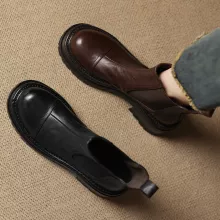 Elevate your everyday look with these women’s leather patchwork slip-on Chelsea ankle boots. Designed for the modern woman who values both comfort and fashion, these boots blend classic charm with contemporary flair. The luxurious cow leather upper is paired with elastic fabric panels, giving you a snug yet flexible fit that’s easy to slip on and off—perfect for busy mornings or spontaneous nights out.