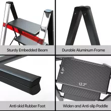 Make everyday tasks safer and easier with this lightweight 3-step folding aluminum ladder. Designed for daily use at home or in the office, it gives you the extra height you need without the bulk of a traditional ladder. Whether you’re reaching the top shelf, changing a light bulb, or decorating for a special occasion, this step ladder delivers stability, comfort, and peace of mind every time you climb.