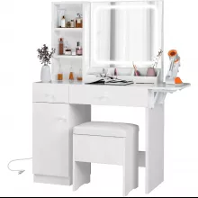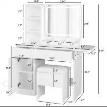 Not only does our vanity desk feature a stylish and functional design, but it also includes thoughtful details like a power outlet and adjustable light settings that set it apart from others. It’s built to accommodate all your beautifying needs with unmatched elegance and efficiency.