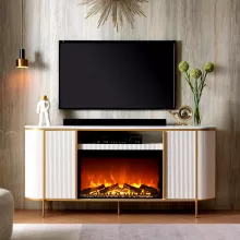 Transform your home entertainment area with our stunning Luxury 70″ Fluted Fireplace TV Stand. This modern chic entertainment center is designed to complement TVs up to 80 inches, offering a perfect blend of style and functionality. The elegant fluted panel design and faux marble top create a luxurious aesthetic, making this piece a focal point in any room.