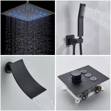 I recently installed this shower system in my bathroom, and I couldn't be happier. The LED lights provide a beautiful, relaxing ambiance, making every shower feel like a spa experience. The water pressure is just right, and the temperature control is precise, ensuring a comfortable shower every time. The design is sleek and modern, fitting perfectly with my bathroom decor. Installation was straightforward, and the quality of the materials is evident. I've received numerous compliments from guests about the stylish look of my new shower system. It has truly transformed my daily routine, making it something I look forward to. Highly recommend this product to anyone looking to upgrade their shower experience.
