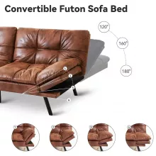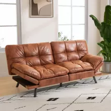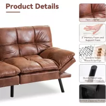 Constructed with a 2.5-inch thick layer of plush memory foam atop supportive cotton padding, our sofa bed ensures a restful sleep by evenly distributing pressure. The premium faux leather upholstery is not only soft to the touch but also durable, maintaining its elegance through regular use. Its classic brown shade complements any decor, enhancing the aesthetic of your space while providing lasting comfort.