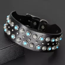 This luxurious spiked leather collar isn’t just stylish—it’s designed for real-world use. Its sturdy construction makes it ideal for training, daily walks, and high-energy activities. The jeweled detailing sets it apart from ordinary collars, giving your pet a premium look that turns heads wherever you go. Whether you’re preparing for a pet show or simply want your dog to look their best, this collar delivers beauty, comfort, and unmatched durability.
