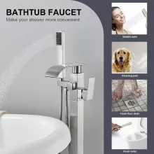 This floor-standing faucet is not only a functional addition but also an artistic statement. Ideal for modern, minimalist, or any contemporary bathroom decor, it stands out as a piece of art. Whether you are renovating or building a new bathroom, this faucet adds a touch of elegance and sophistication.