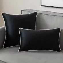 Designed with both style and function in mind, this cushion cover is made from durable polyester velvet that feels smooth to the touch. The solid color base is beautifully framed by bold piping, giving it a high-end finish. Available in square and rectangular shapes, it’s a versatile addition to your décor collection.