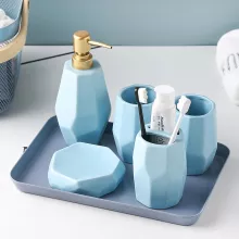 - Complete Five-Piece Set: Includes a tray, mouthwash cup, toothbrush cup, and other bathroom essentials.