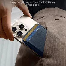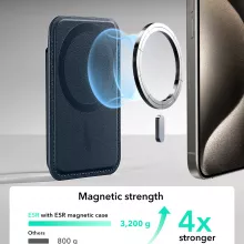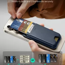The wallet features a 250% stronger magnetic lock than standard options, ensuring it stays firmly attached to your phone no matter where your day takes you. A secure finger loop on the back not only provides extra grip but also makes holding your phone more comfortable on the go. Thanks to the dynamic tension spring inside, your cards remain snugly in place without slipping, even when fully loaded.