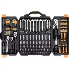 All 192 pieces are organized in a tough, blow-molded plastic case that keeps tools secure, clean, and ready to go. Its compact 14.96″ (L) x 3.93″ (W) x 17.72″ (H) size makes storage simple, while the sturdy handle allows for easy transport. The black diamond-patterned design not only looks sleek but is also dirt-resistant, ensuring your tool kit stays professional and reliable wherever you take it.
