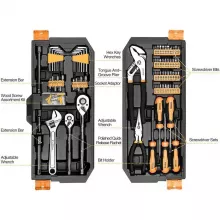 - Versatile selection of drive sockets, screwdriver bits, pliers, wrenches, adaptors, and more