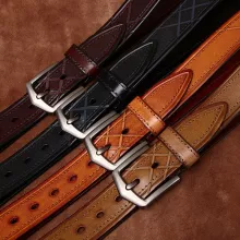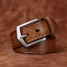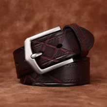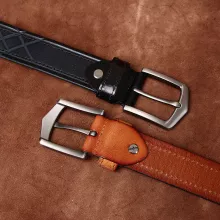 Made from top-grain cowhide, this belt maintains its rich feel and long-lasting performance. The alloy pin buckle adds a bold touch while ensuring a secure hold throughout the day. Available in classic masculine shades—Black, Coffee, Reddish Brown, and Khaki—it complements any wardrobe with ease.