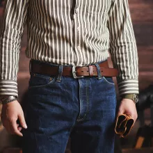 Ready to replace flimsy belts that crack and stretch? Step up to authentic cowhide quality that lasts. Add this vintage-style leather belt to your cart now and give your jeans the perfect finishing touch.
