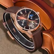 Step into a world where classic aviation-inspired design meets cutting-edge precision. This men’s luxury automatic watch combines striking aesthetics with advanced functionality, creating a timepiece that makes a statement every time you wear it. Featuring a numberless round dial, sapphire glass, and a mesmerizing moonphase complication, it’s a watch designed not just to tell time—but to elevate your presence.
