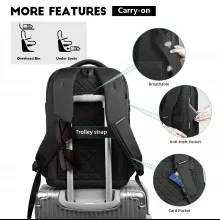 The backpack features an ergonomic design with S-shaped, breathable shoulder straps that reduce pressure during long wear. Its padded back panel allows for maximum ventilation and comfort, while the built-in luggage strap lets you securely attach it to your suitcase — perfect for business travel or weekend getaways.