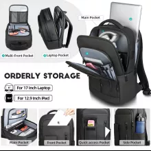 The large 20–35L capacity ensures you have room for everything you need. It includes multiple compartments, a dedicated 17-inch laptop sleeve, a 12.9-inch tablet pocket, and several organizer sections for phones, documents, water bottles, and more. Whether it’s work files or outdoor gear, this backpack keeps it all in order.