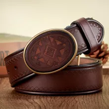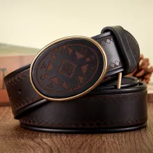 This belt stands out thanks to its extra-thick cowhide construction and detailed laser engraving. The material naturally becomes more supple and visually appealing with age, creating a personalized, worn-in look that tells your story over time. Its durability makes it ideal for daily use, while the elegant pattern elevates your style without being overly flashy.