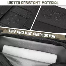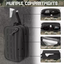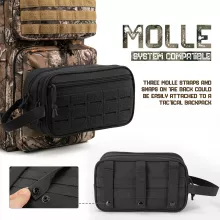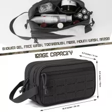 • MOLLE Pouches: Multiple compartments for organized storage of razors, toothbrushes, and small accessories.