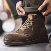 Made with high-quality suede and reinforced stitching, these boots are built to handle the demands of everyday wear. The thick rubber outsole offers superior traction and grip on a variety of surfaces, making them ideal for both city streets and rough terrain. Inside, a breathable canvas lining and cushioned fabric insole keep your feet warm, comfortable, and supported even after long hours on your feet. The lace-up closure allows for a customizable fit, while the round toe design ensures natural movement and plenty of room.