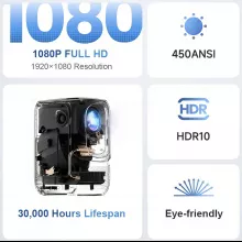 Step into a world of immersive entertainment with the Mini Portable Full HD Projector. Elevate your movie nights, gaming sessions, and presentations to a whole new level with stunning 1080P resolution and 450 ANSI lumens of brightness.