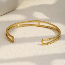 Crafted from high-quality 316L stainless steel and finished with rich 18K PVD gold plating, this bracelet is made to last. It is waterproof and hypoallergenic, making it safe for sensitive skin and perfect for daily wear. You can keep it on while washing your hands or going about your routine without worry. The smooth cuff style slips on easily and holds its shape beautifully.