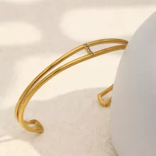 The simple double layer design offers a modern twist on a classic cuff. It looks delicate but feels strong, giving you the best of both worlds. The rounded shape and tension setting create a clean, balanced look that works with everything from office wear to evening outfits. This is the kind of accessory you will reach for again and again.
