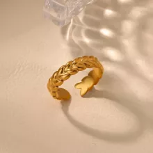 Upgrade your jewelry collection or surprise someone special with this stunning 18K Gold Plated Stainless Steel Spliced Wheat Ring. Its elegance and unique design make it the perfect gift for the woman who appreciates simplicity, beauty, and modern fashion.