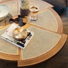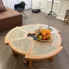 This coffee table stands out for its unique combination of rattan and solid ash wood, lending it both durability and a visually appealing texture. Its minimalist design ensures that it blends seamlessly into any decor, while its round shape encourages a more intimate and inviting atmosphere. Plus, the foldable feature adds a practical edge, making it easy to store or move as needed.