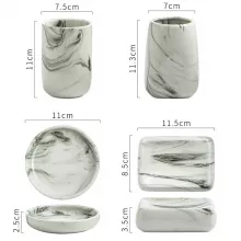 - Complete Set: Includes a liquid soap dispenser, toothbrush cup, mouthwash cup, and matching soap dish.
