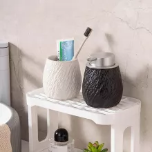 - Modern Aesthetic: Unique stone texture with a matte black and white contrast brings a luxurious, spa-like feel.