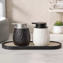 Upgrade your bathroom or kitchen with this European-style ceramic lotion dispenser, a perfect blend of modern minimalism and timeless charm. Designed with a sleek stone pattern finish in classic black and white, it effortlessly complements any décor—from contemporary hotel bathrooms to cozy home spaces. The smooth ceramic surface and refined silhouette add a touch of sophistication to your countertop while keeping your essentials organized.