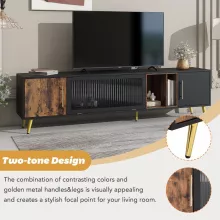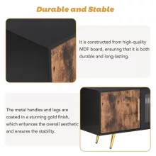 - Durable Construction: Crafted from high-quality MDF board, this TV stand is built to last, promising years of reliable use. The sleek metal handles and legs feature a stunning gold finish, adding a touch of luxury to your space.
