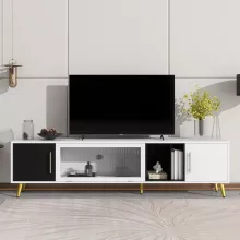- Durable Construction: Crafted from high-quality MDF board, this TV stand is built to last, promising years of reliable use. The sleek metal handles and legs feature a stunning gold finish, adding a touch of luxury to your space.